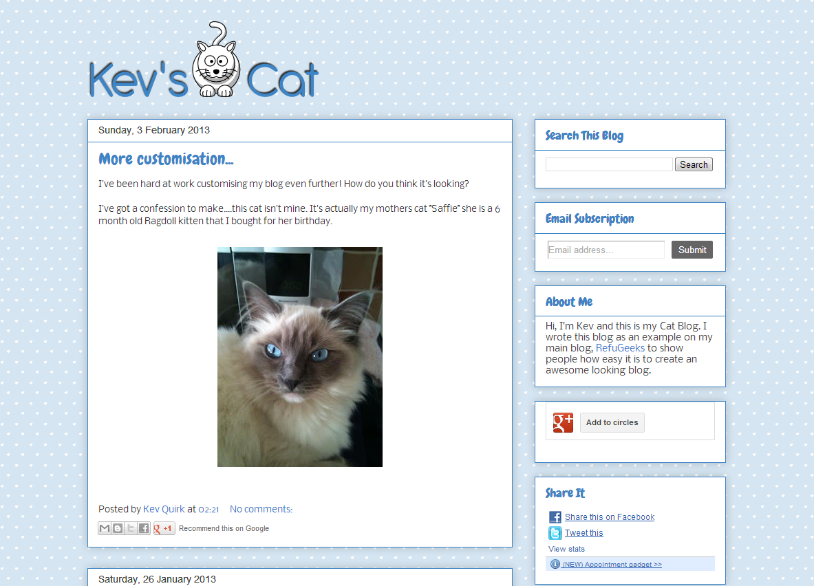 Here is what my Cat Blog looks like now that I’ve customised some of the gadgets: