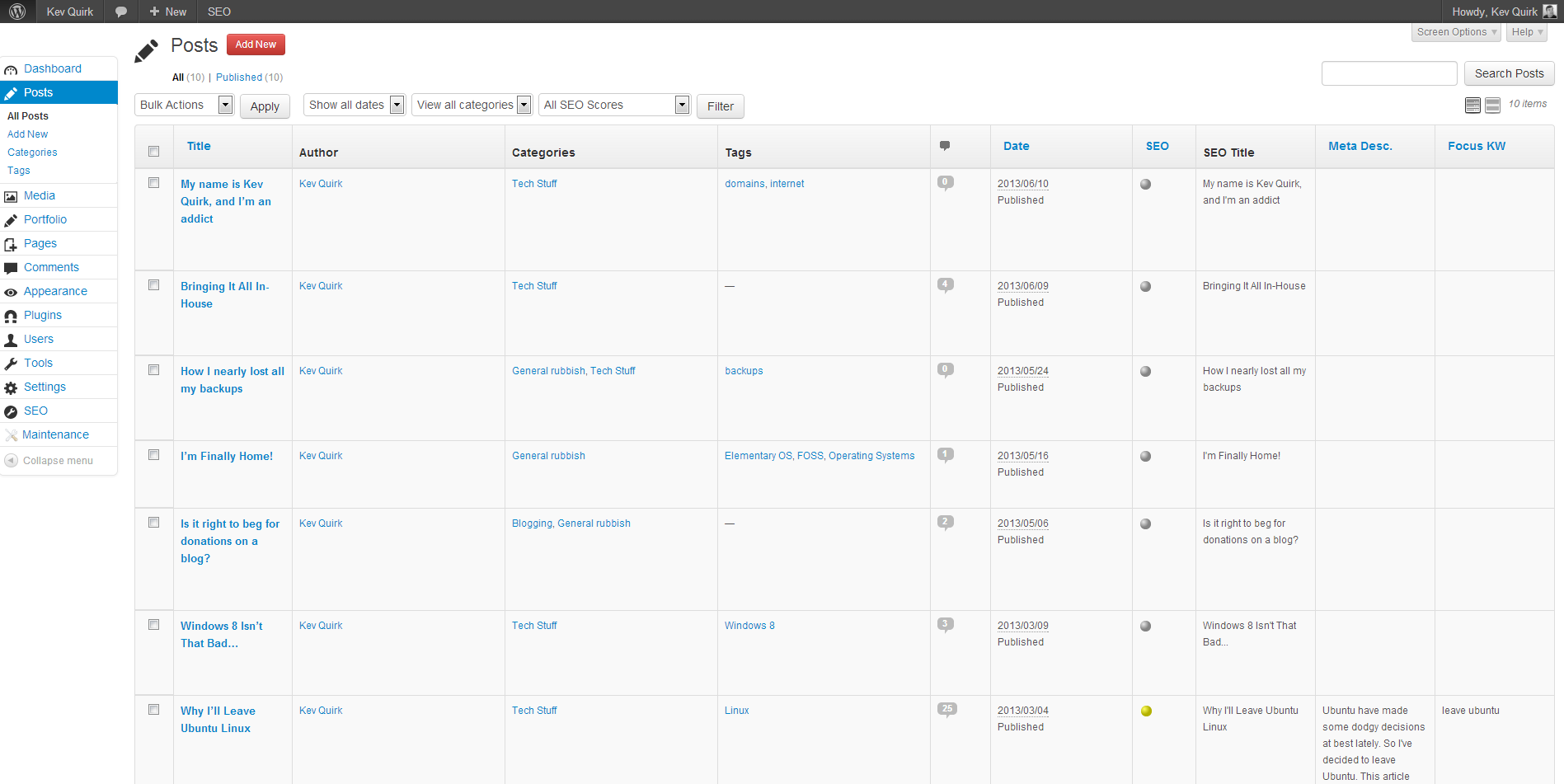 The default look of the WordPress backend isn’t really much to write home about. It’s all very grey with a few hints of blue. On the whole, nothing special, and certainly pretty crappy looking when you compare it other back-ends like that of Drupal or Joomla. Here is a look at the default WordPress back-end on my personal website: