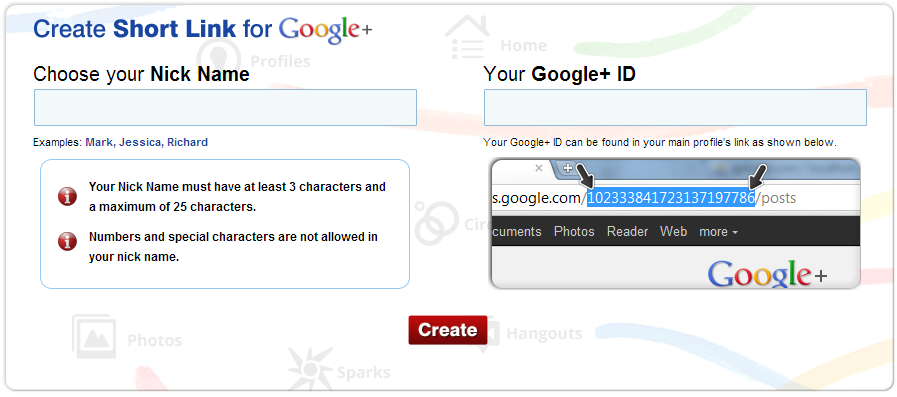 Nevertheless, it’s a great service and if you need to add a number one to the end of your username is it really such a big deal? All you need to do to register for a Google+ vanity URL with Gplus.to is enter the long numeric string from your Google+ profile address and choose a username. There is no sign up and you don’t have to give any personal details.