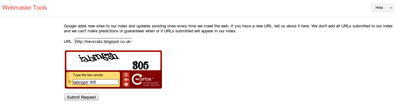 Now that we have our description setup, we need to submit our site to Google so that they start crawling our blog and displaying it in relevant searches. Submitting a site to Google is extremely easy. just click on this link, fill in your blog address and anti-spam words and click submit. Job done, Google will now start crawling your site.