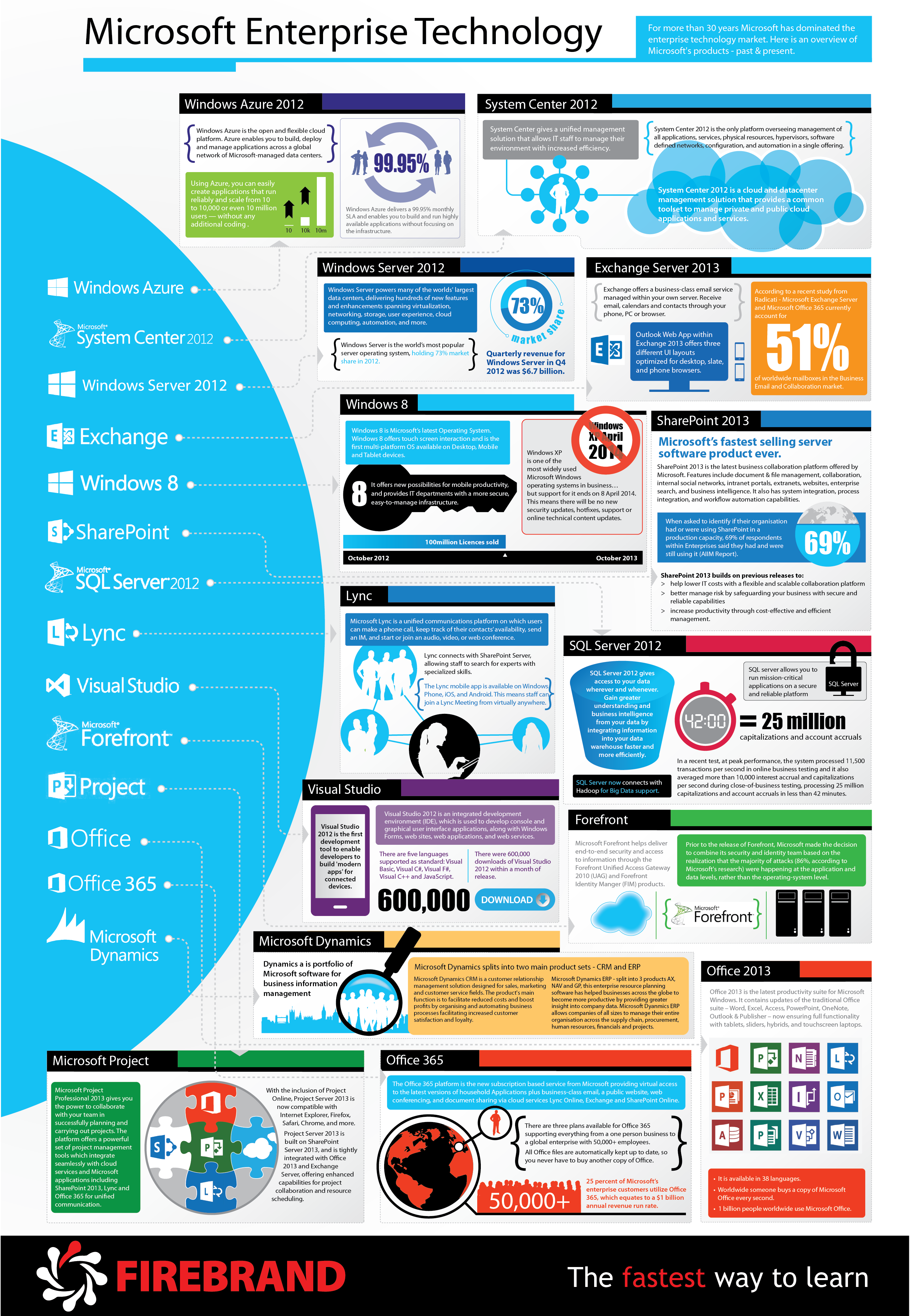The infographic below, which has been created by the guys over at Firebrand Training shows just how diverse the Microsoft software catalogue really is. Are there any programs on this infographic that you don’t recognise?