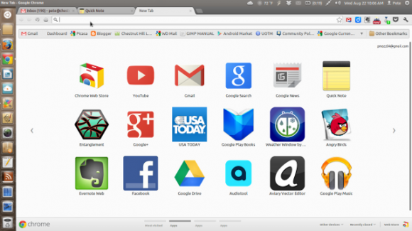 To add to this, it's easy to also toggle the Bookmark bar. Here, Chrome takes advantage of a setting that hides the bookmark bar and displays it only on the new tabs page. This makes the new tab page a great way to launch pages in Chrome. It's a quick means of navigation that's sorely lacking in Firefox.