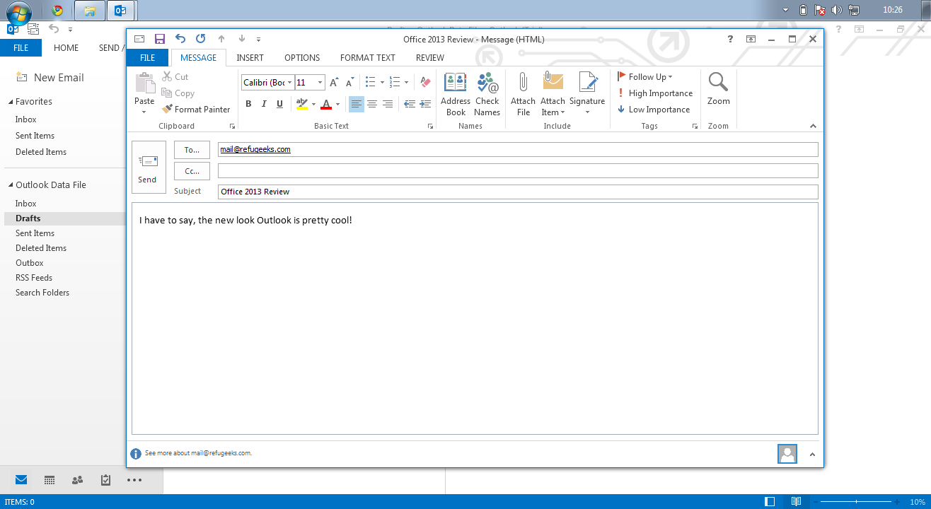 Outlook has been brought bang up to date, sporting a very clean and crisp look (as have all the Office 2013 apps). The performance of Outlook seemed ok to me, definitely an improvement on Outlook 2010 when doing things like selecting multiple email messages, but unfortunately it still isn’t a patch on Thunderbird for me.